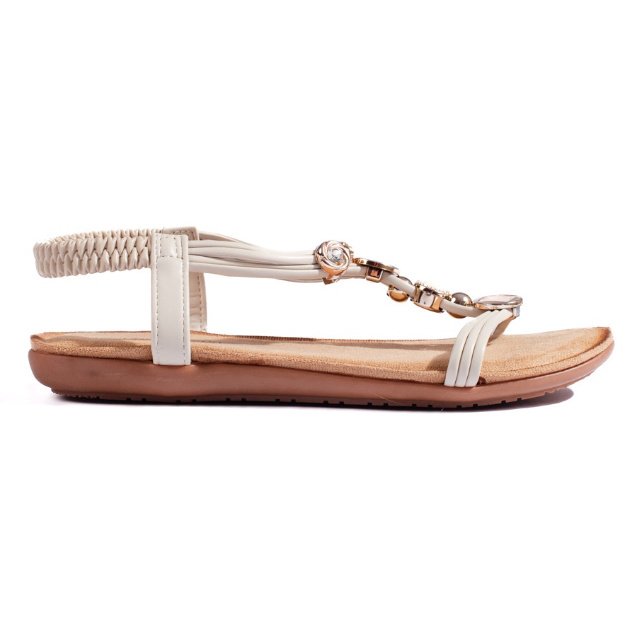 Muodikkaat beige -väri yhdistettynä tyylikkäisiin tarvikkeisiin zirkonien ja strassin muodossa tekee näistä sandaaleista täydellisen täydennyksen sekä klassisiin että muotityylisiin. Heidän asetettu leikkaus tekee asemasta ja lentoonlähdöstä on nopeaa ja vaivaa -ja tasainen kantapää, jonka korkeus on 3 cm, takaa mukavuuden jopa pitkän aikavälin kulumisen aikana.