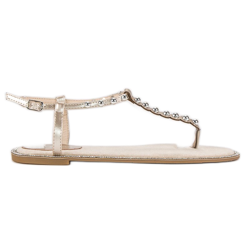 Sandaalien ulkonäkö tekee vaikutuksen minimalistisella muotoilulla ilman kärkeä, joka mahdollistaa jalkojen vapaan tuuletuksen lämpiminä päivinä. Vain 0,5 cm:n litteän kantapään ansiosta nämä kengät sopivat täydellisesti sekä ranta- että kaupunkikävelyihin. Lisäetuna ovat pienet strassit, jotka korostavat hienovaraisesti niiden eleganssia ja antavat niille hieman modernia luonnetta.