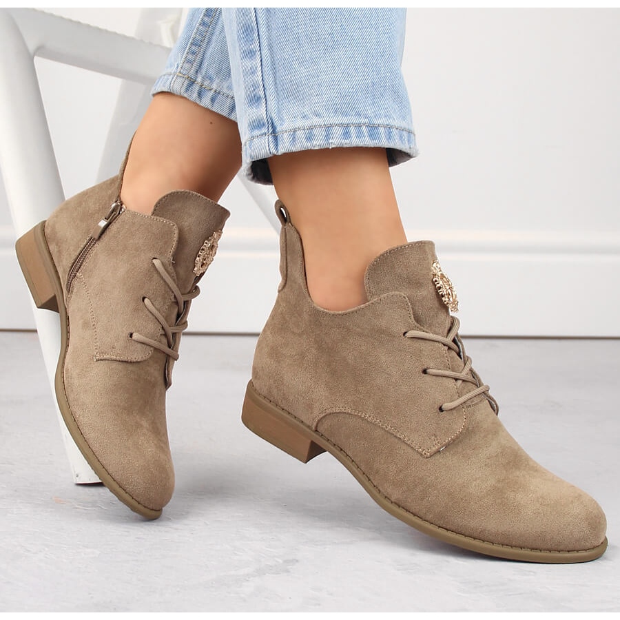 Yksityiskohdat: Beiget mokkanahkaiset naisten matalakorkoiset nilkkurit Jezzi ASA142-54