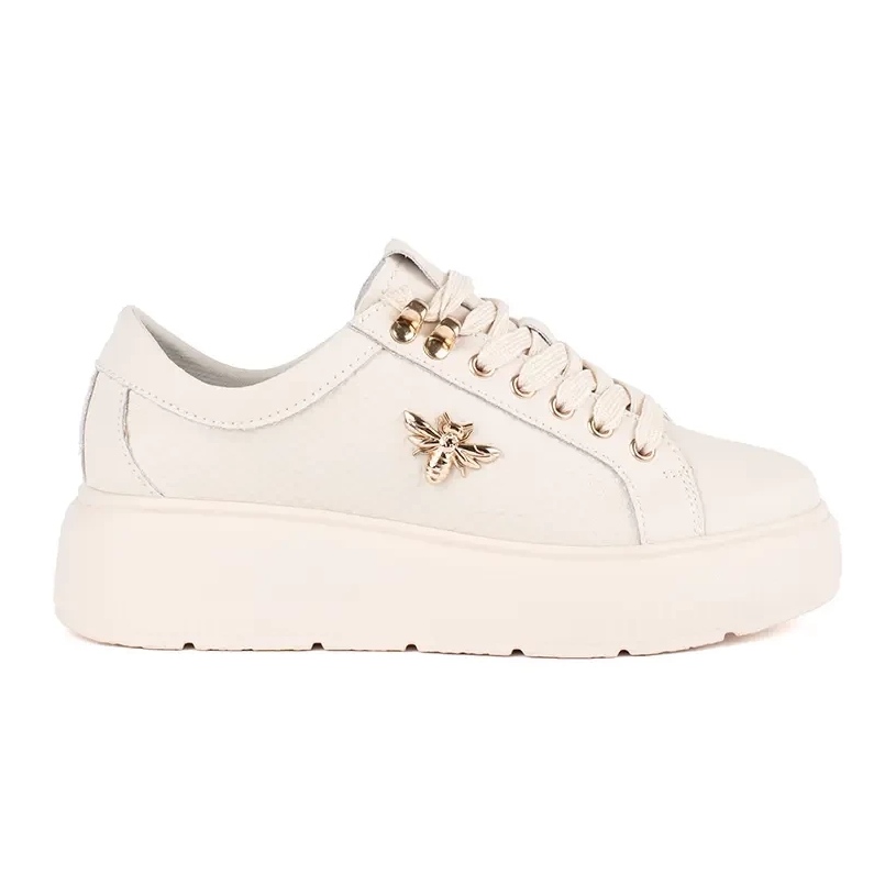 Yksityiskohdat: Beiget nahkaiset alustalenkkarit valkoinen