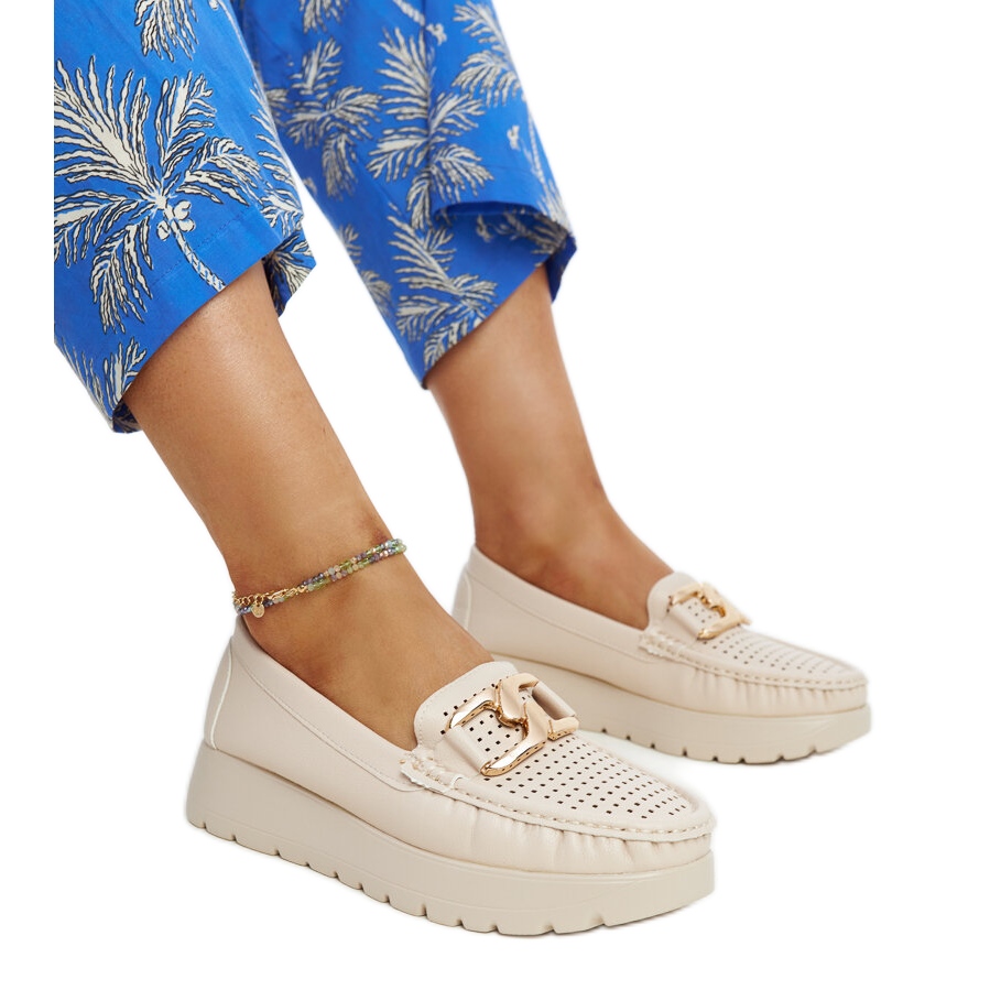 Beige -nahkakengät, joissa on koristeellinen solki, on monipuolinen malli, jonka voit helposti koota erilaisilla tyylillä - rentoista hieman tyylikkäimpiin. Sijoita tähän muodikkaan lisää -on ja nauti mukavuudesta ja tyylistä joka päivä! Valmistajan alkuperäisessä laatikossa nämä kengät ovat myös loistava lahjaidea.