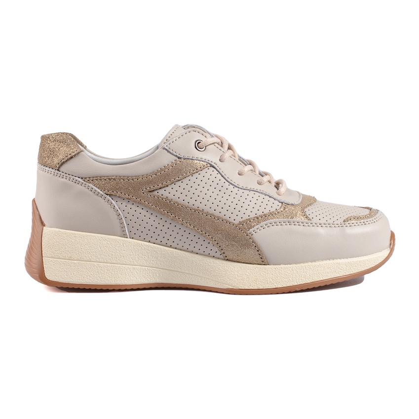 Beige -nahkaisen lenkkarit Shelovet -alustalla - beige malli