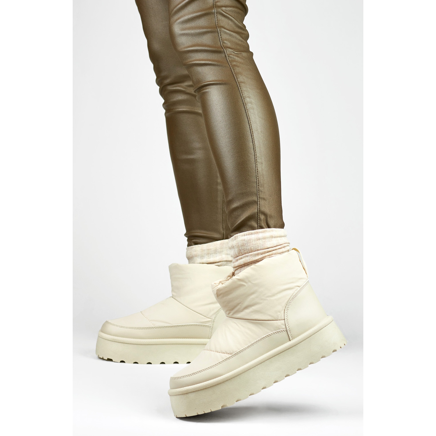 Yksityiskohdat: Beiget naisten talvisaappaat, joissa on alusta