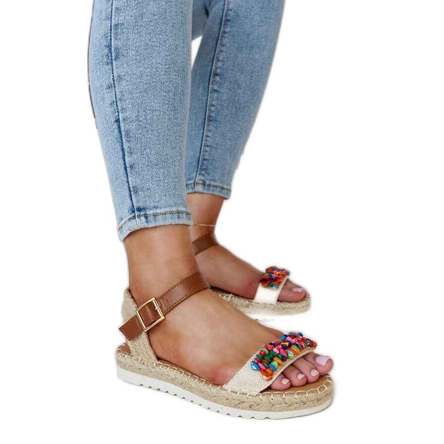 Beiget Galatinen sandaalit värikkäillä kivillä ovat ehdoton kesän ehdoton hankinta! Näissä tyylikkäissä espadrilleissa yhdistyvät eleganssi ja mukavuus, mikä tekee niistä täydellisen valinnan lämpimiin, aurinkoisiin päiviin. Valmistettu korkealaatuisesta kankaasta ja muovista, ne takaavat paitsi kestävyyden myös käyttömukavuuden.