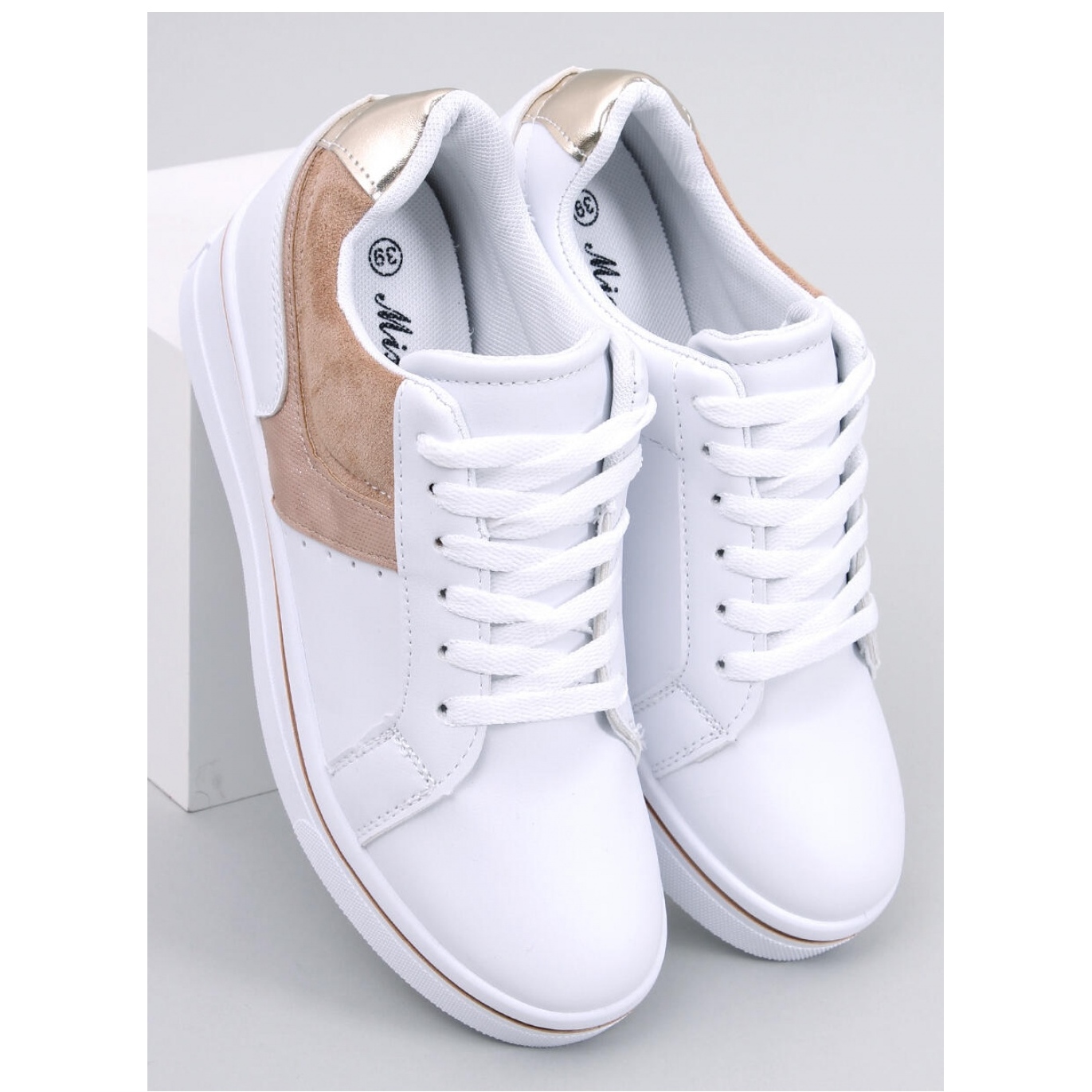 Älä odota! Valitse beige -valkoisen kiilan lenkkarit - täydellinen yhdistelmä tyyliä ja mukavuutta yhdessä. Täydellinen moderneille naisille, jotka haluavat näyttää muodikkaalta ja tuntea olonsa mukavaksi. Valmistajan alkuperäinen pakkaus varmistaa, että uudet kengät saavuttavat sinut erinomaisessa kunnossa. Sijoita mukavuuteen ja tyyliisi tänään!