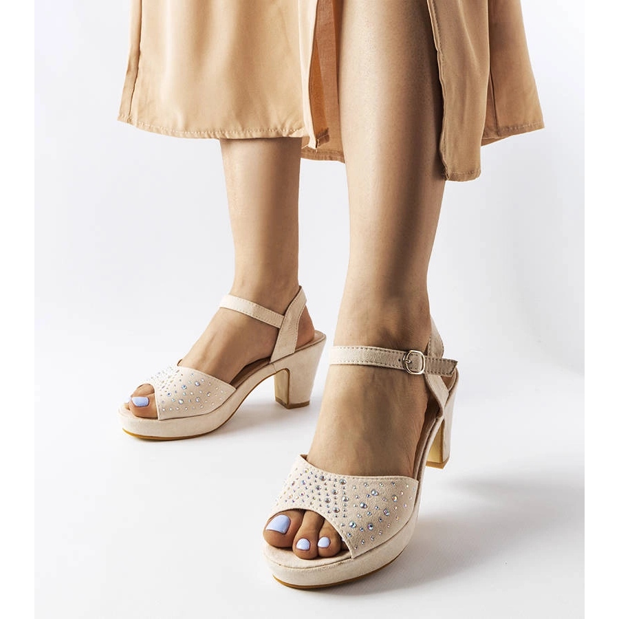 Klassiset sandaalit Beltane -pylväässä universaalisessa beigevärissä ovat täydellinen valinta kesämatkoihin ja tyylikkäisiin tilanteisiin. Se on koristeltu zirkoneilla ja strassilla, ne lisäävät kiiltoa ja hienovaraisen luokan jokaisesta tyylityksestä. Pitkä, 8 cm: n kantapää, kuten Post, ohuet, ja avoin varvas paljastaa jalan erittäin aistillisella tavalla. Säädettävä soljen kiinnitys mahdollistaa tarkan istuvuuden, varmistaen vakauden kävellessä.