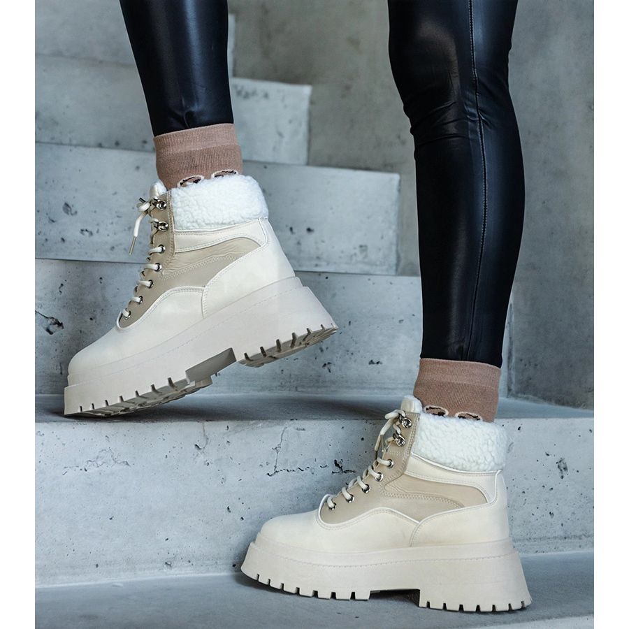 Inna marka Bestin beige-lenkkarit paksulla pohjalla ja turkisella