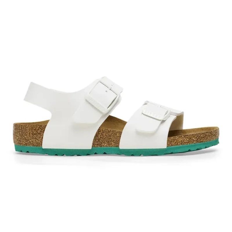 Birkenstock New York Kid BS 1026836 -sandaalit autiomaassa maaperässä Valkoinen/vihreä on täydellinen valinta aktiivisille lapsille. Ne luotiin nuorimmalle yhdistämällä kestävyyden moderniin muotoiluun. Valmistettu innovatiivisesta Birko-Flor®-materiaalista, niille on ominaista vaurioiden vastustuskyky, mikä tekee niistä täydellisen jokapäiväiseen käyttöön.