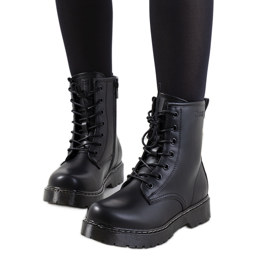 Mustat Big Star II274105 bovver-saappaat, jotka sopivat täydellisesti sekä arkeen että rohkeampaan tyyliin, ovat jokaisen naisen vaatekaappi. Alkuperäiseen laatikkoon pakattuna sopivat myös lahjaksi. Älä odota, hanki itsellesi pari, joka lisää tyyliisi luonnetta!