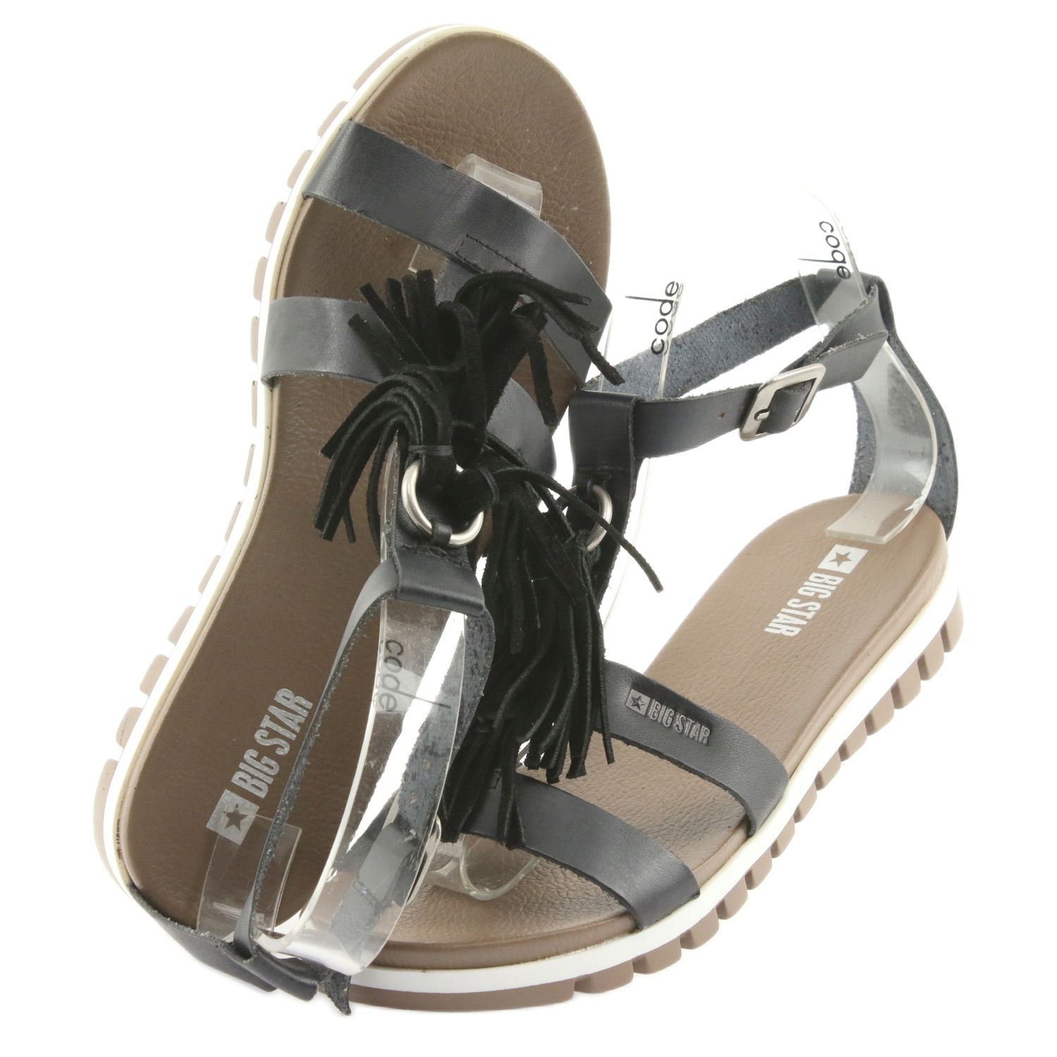 Yksityiskohdat: Big Star Boho 274956 Naisten nahka sandaalit reunoilla musta