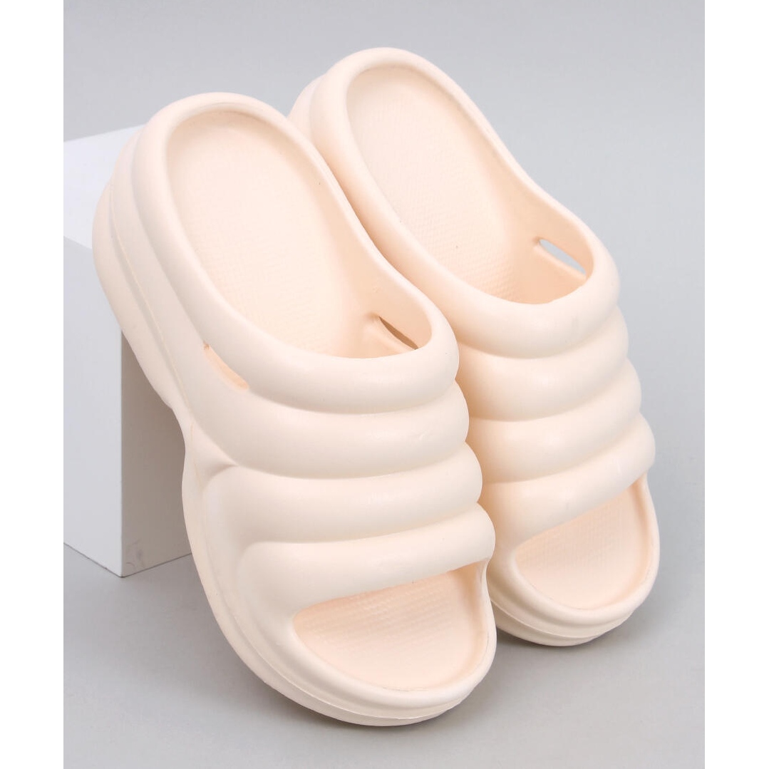 Inna marka Brassie Beige -vaahtovarvastossut alustalla - vaalea beige