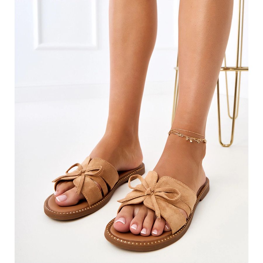 Löydä ruskeat flippejä, joissa on keula ja koriste reunoista, joista tulee olennainen osa vaatekaappiasi! Nämä ainutlaatuiset kamelin värivaihtoehdot yhdistävät eleganssin ja mukavuuden, vastaavat täydellisesti jokapäiväistä tyyliä.