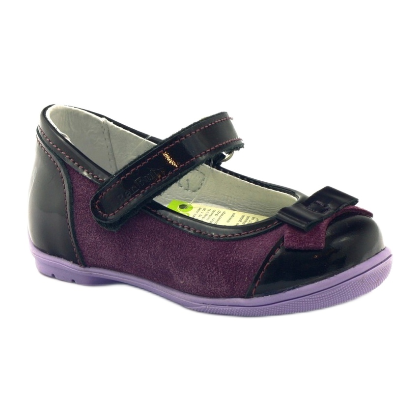 Balerinakengät on varustettu käytännöllisellä tarranauhalla, mikä helpottaa huomattavasti kenkien pukemista ja riisumista, mikä on erityisen tärkeää pienimmille. Jäykkä kantapää ja mukava, antibakteerinen luonnonnahasta valmistettu pohjallinen antavat riittävän tuen lapsen kehittyville jaloille.