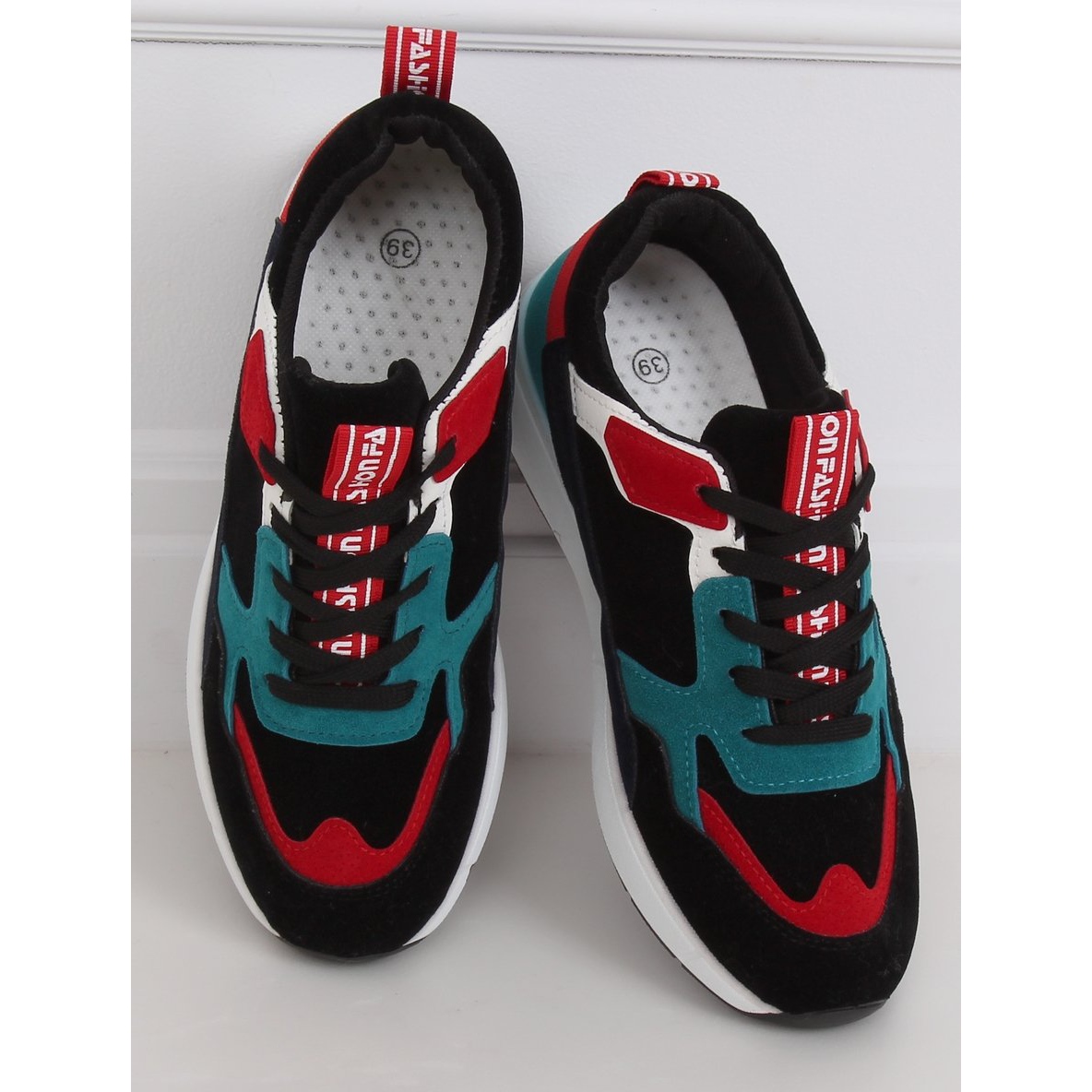 Yksityiskohdat: C9212 Negro mokkanahkaiset urheilukengät monivärinen