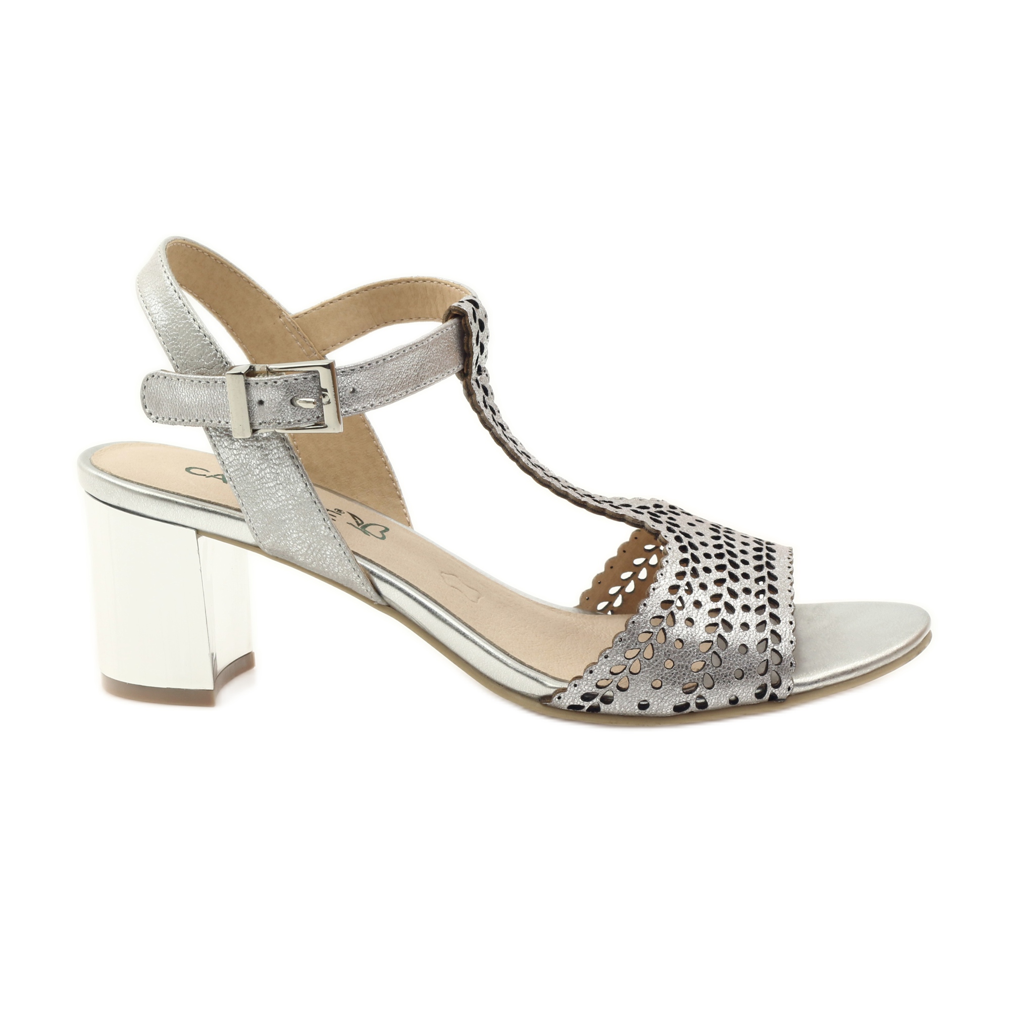 Caprice 28301 harjakattoiset sandaalit muodikkaassa hopeanharmaassa sävyssä ovat ehdotus naisille, jotka arvostavat eleganssia ja mukavuutta. Luonnonnahasta valmistetut klassiset sandaalit yhdistävät korkean laadun ja ainutlaatuisen tyylin. Niiden 6,5-senttinen metalloitu kantapää lisää viehätysvoimaa ja korostaa figuuria ja varmistaa samalla vakauden kävellessä.