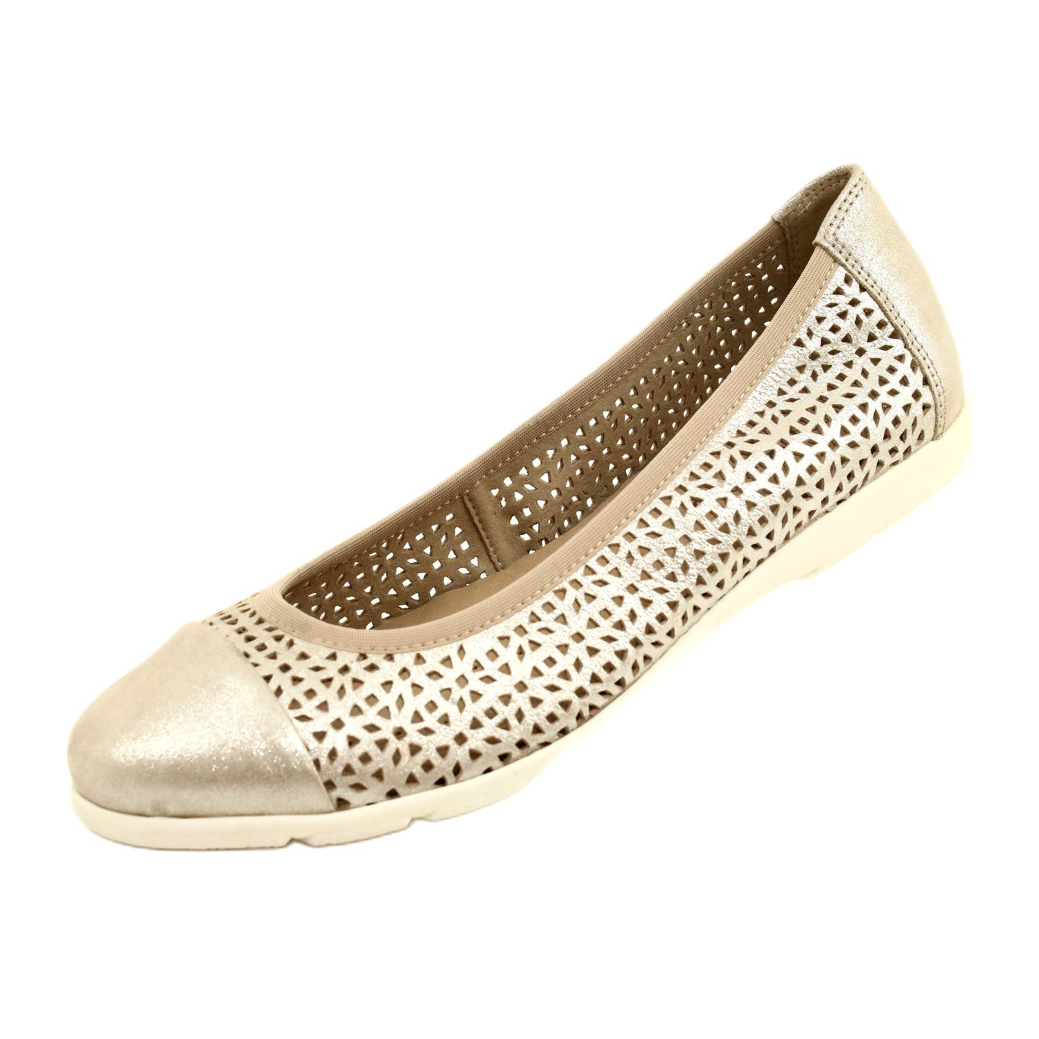 Yksityiskohdat: Caprice naisten harjakattoiset balerinat 22151-28 354 Beige - metallinen