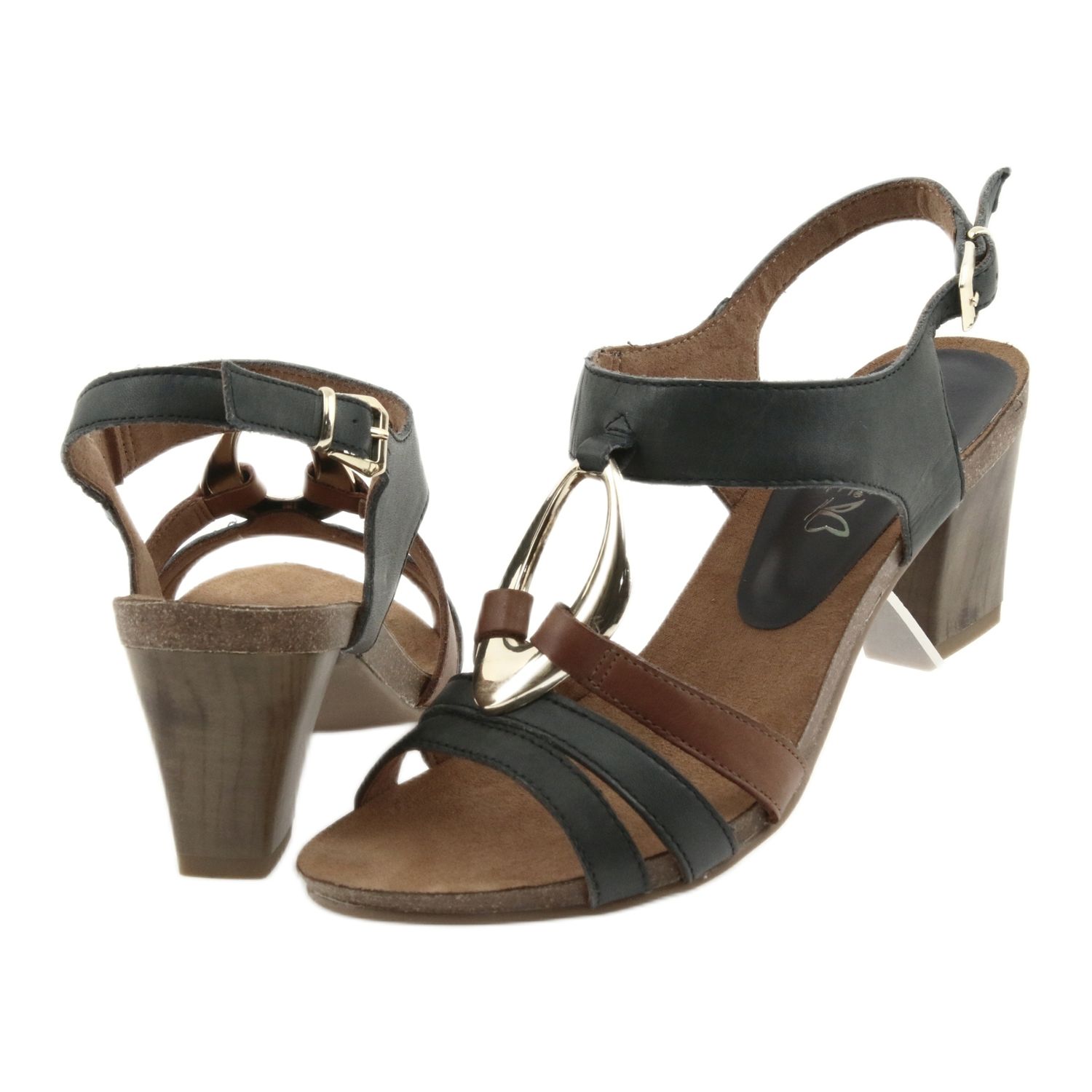 Caprice 28308 naisten sandaalit ovat täydellinen valinta naisille, jotka arvostavat eleganssia ja mukavuutta. Nämä laadukkaasta luonnonnahasta valmistetut laivastonsiniset ja ruskeat sandaalit koristekullalla ovat täydellinen yhdistelmä tyyliä ja käytännöllisyyttä. Niiden hienovarainen muotoilu sisältää herkän 6,5 cm:n lohkokoron, mikä tekee niistä mukavat käyttää koko päivän.