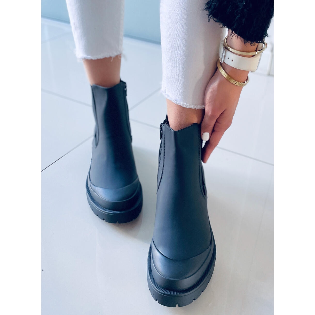 Valmistettu korkealaatuisesta ekologisesta nahasta, ne näyttävät erittäin tyylikkäiltä mattapintaisen viimeistelynsä ansiosta. Käytännöllinen vetoketju ja joustava kumiosa helpottavat pukemista, ja pyöreä kärki lisää hienovaraisuutta. Nämä saappaat ulottuvat nilkan yläpuolelle, mikä tekee niistä täydelliset käytettäväksi kylmimpinä päivinä.