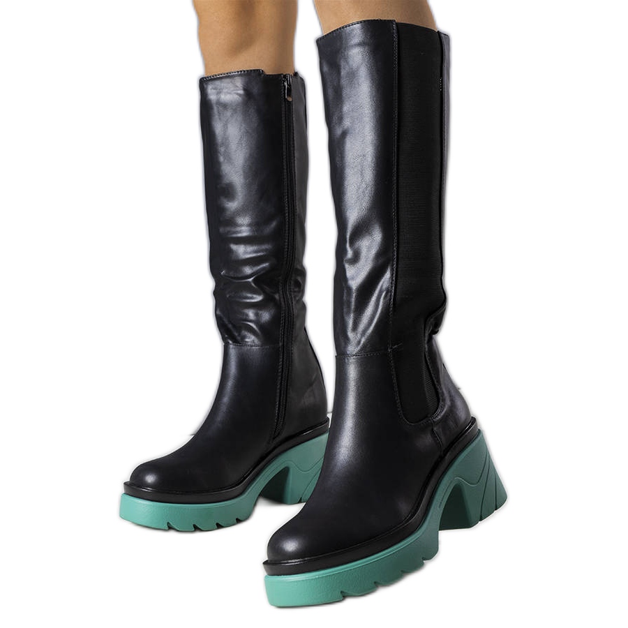 Inna marka Charlan mustat saappaat sinisellä pohjalla