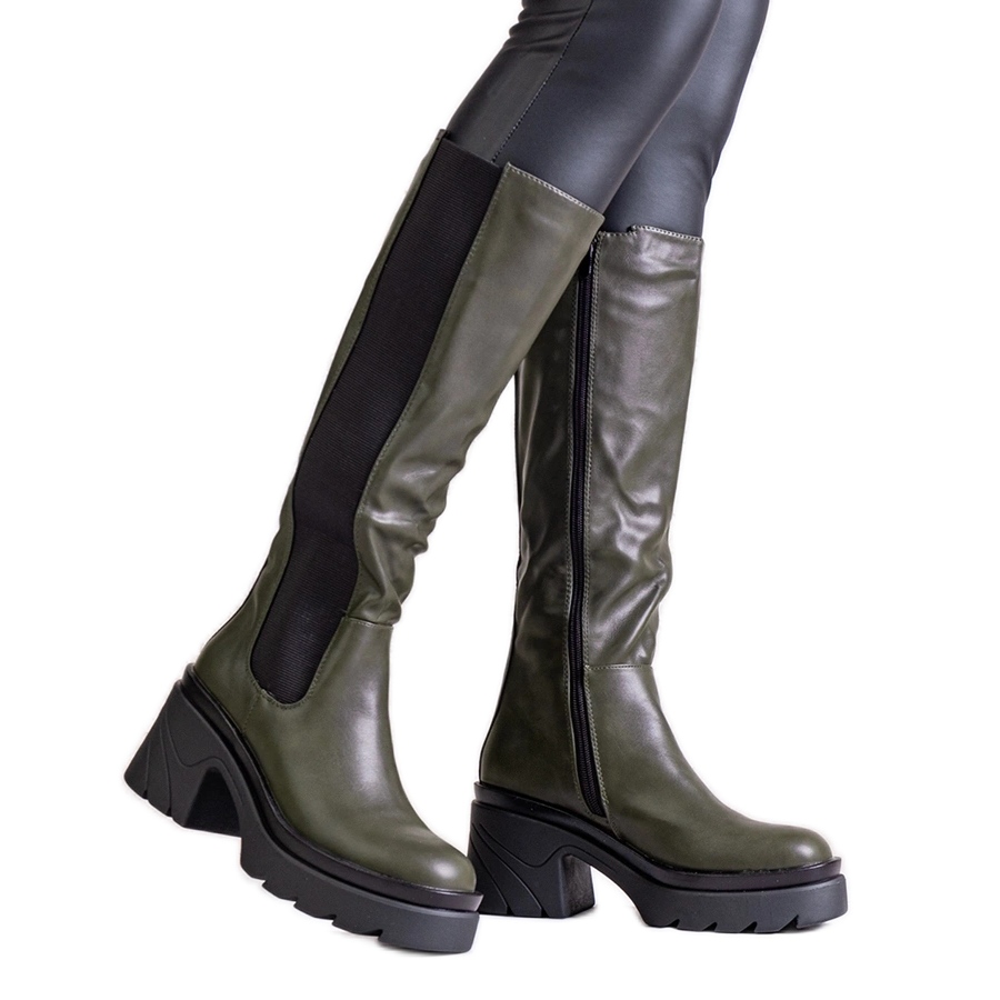 Inna marka Charlan vihreät saappaat paksummalla kantapäällä