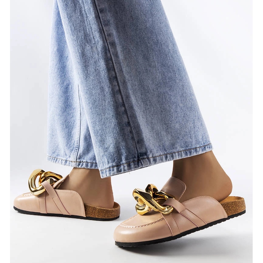 Tyylikäs ja mukava Christelle -flip flops ovat ehdotus naisille, jotka arvostavat muodikasta ilmettä luopumatta mukavuudesta. Herkkä vaaleanpunainen ja koristeellinen kultainen ketju antavat heille tyylin, ja mokkanahan ekologisesta nahasta pehmeä insertti varmistaa mukavuuden koko päivän.