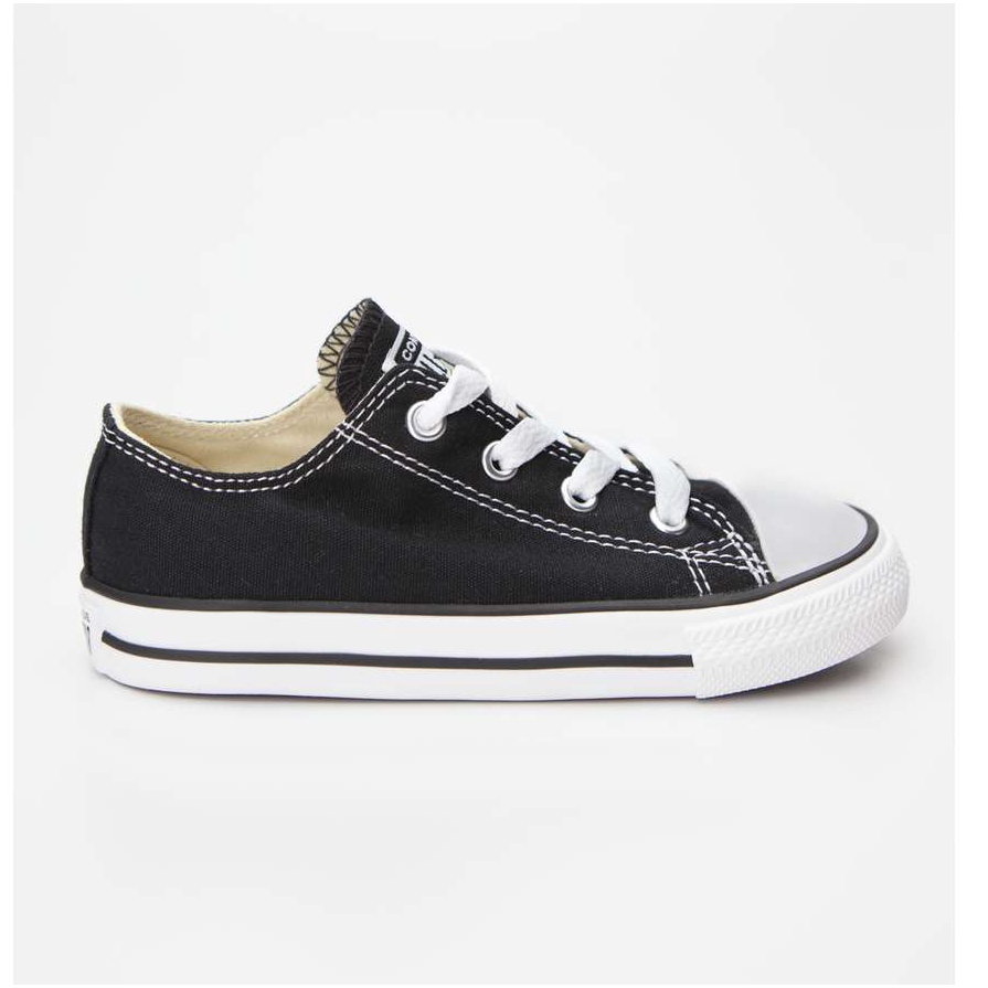 Chuck Taylorin klassinen siluetti lasten versiossa - ajattomat lenkkarit, jotka toimivat päivittäin, kouluun ja leikkikentälle. Kestävästä kankaasta valmistettu musta yläosa, valkoiset kontrastiset nauhat ja ominainen kum sormenkansi luovat tunnistettavan, yleisen ilmeen.