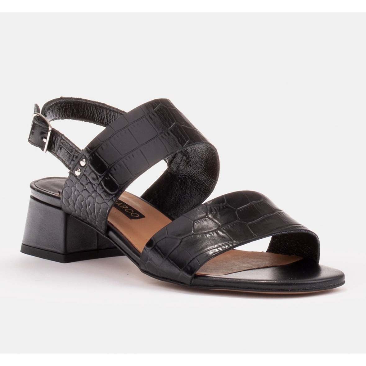Yksityiskohdat: Marco Shoes Cinta-sandaalit, joissa on nahkapäällystetty kantapää musta