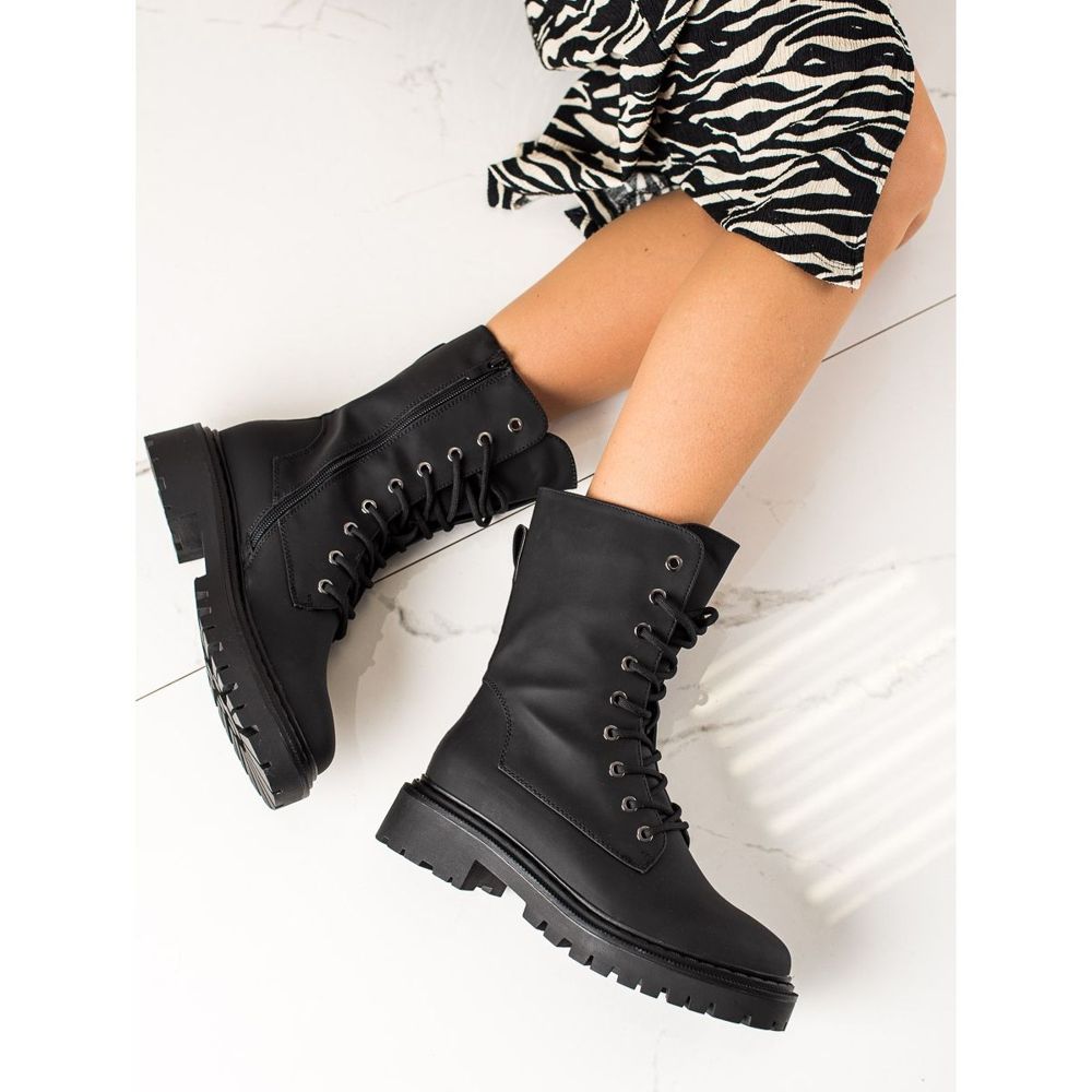 Erynnin mustat työntekijät sopivat täydellisesti casual- ja rock-tyyliin ja sopivat täydellisesti farkkujen, hameiden ja leggingsien kanssa. Yläleveys 24 cm ja korkeus 20 cm tekevät näistä saappaista sopivia erilaisiin jalkoihin. Vetoketju ja lisänauhat ovat käytännöllisiä yksityiskohtia, jotka eivät vain helpota pukemista, vaan myös lisäävät luonnetta koko tyyliin.