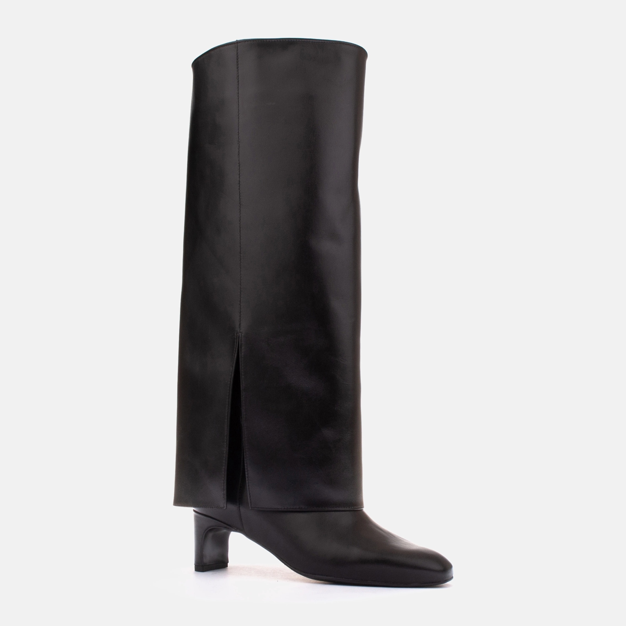 Cleo-mallin lisäetu on alhainen, 5,5 senttimetrin kantapää postina, joka varmistaa vakauden ja mukavuuden kävellessä. Lisäyksen ansiosta kasakkaan asettaminen on yksinkertaista ja kätevää. Mantelin muotoinen varpa lisää tyylikkyyttä ja koko tyylistyksen tyylikäs luonne.