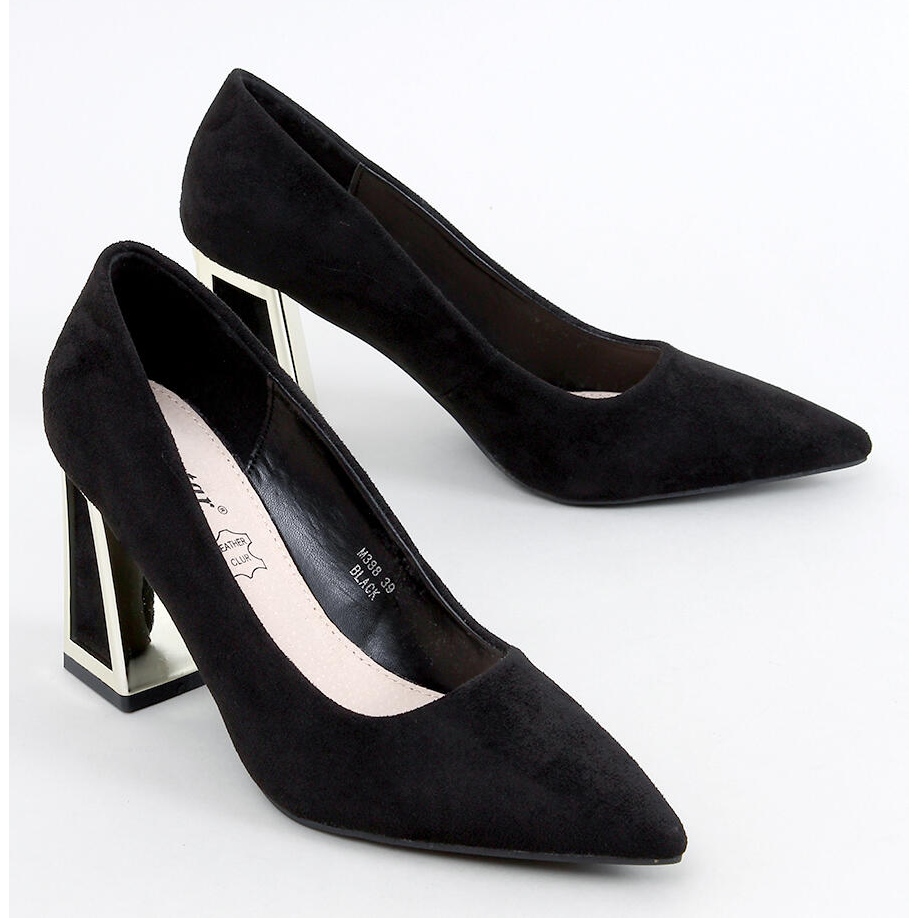 Löydä Constie Black Pumppujen tyylikkyys ja mukavuus. Nämä mokkanahkaisten naisten kengät, joissa on geometrinen kantapää 9 cm korkea, ovat täydellinen yhdistelmä tyyliä ja mukavuutta. Muotoileva leikkaus yhdessä kultaisten inserttien kanssa kiinnittää huomion ja lisää ainutlaatuisen hahmon mihin tahansa tyyliytykseen.