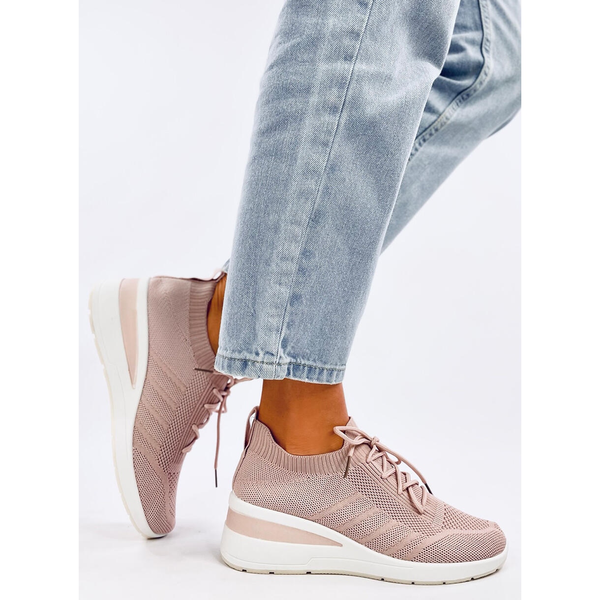 Nämä vaaleanpunaiset lenkkarit pidetään minimalistisessa suunnittelussa, joka sopii täydellisesti päivittäisiin suuntauksiin. Valmistettu joustavasta, sukkakangasta, ne mukautuvat täydellisesti jalkaan, varmistaen mukavuuden koko päivän. 5 cm: n korkea penkki antaa heille hienovaraisen viehätysvoiman ja takaa samalla vakauden ja mukavuuden kävellessään.