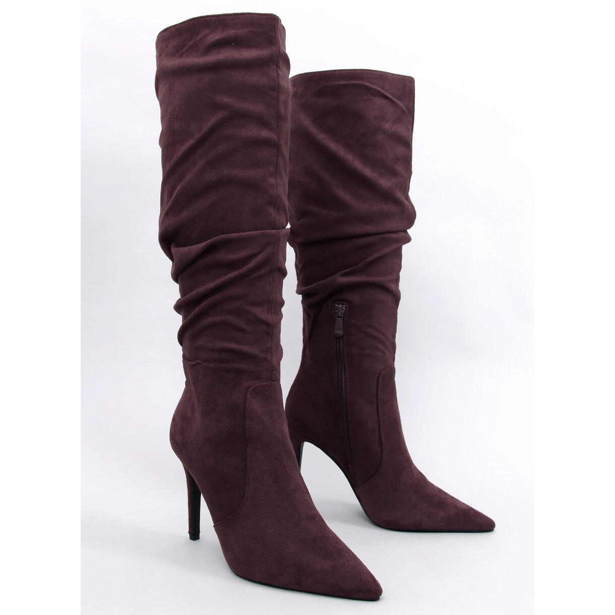 Tyylikäs mokkanahka saappaat korkeimmalla korkokentällä, joka yhdistää klassisen leikkauksen täydellisesti moderneilla yksityiskohdilla. Kapeneva, terävä nenä kauniisti ohut hahmo, ja muodikkaasti rypistynyt yläosa lisää merkkiä. Täydellinen päivittäisiin ja tyylikkäimpiin tyylityksiin - mekkoista vastaaviin farkuihin.