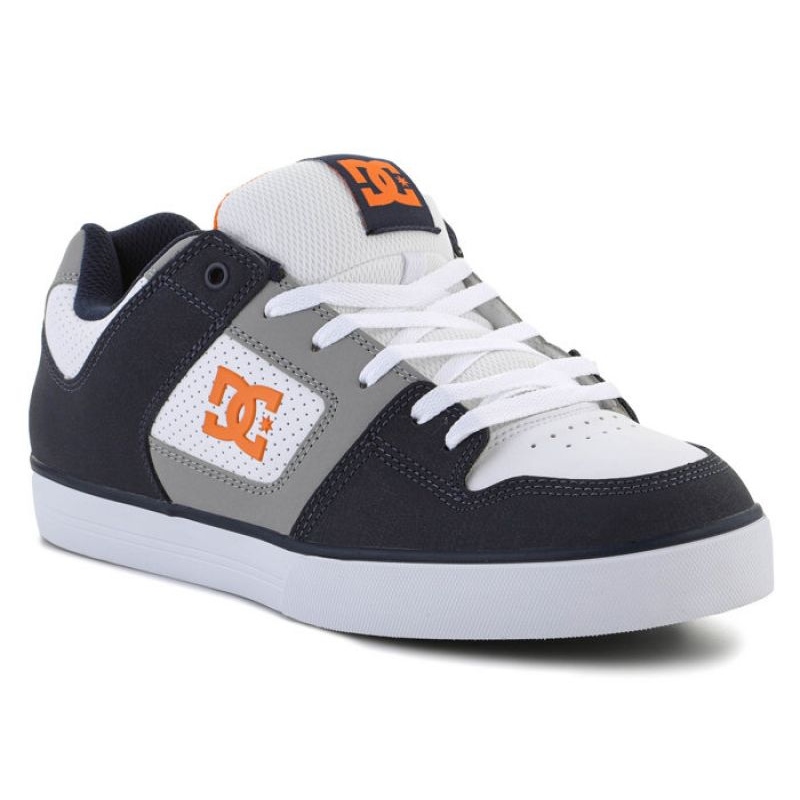 DC Pure M 300660-XWSB -kengät ovat alhaiset, miesten lenkkarit, jotka on suunniteltu päivittäiseen käyttöön. Valkoinen väri oransseilla aksentteilla korostaa modernia, urheilullista hahmoa ja klassista nauhoitusta ja huomaamaton valmistajan logo täydentävät kokonaisuutta.