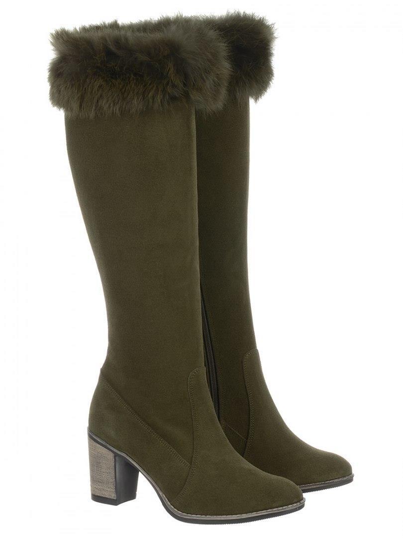 Elegantit ja käytännölliset naisten Diana -saappaat Olivierista ovat täydellinen ratkaisu talveen. Luonnollisesta nahasta, joka on eristetty turkista, ne yhdistävät klassisen leikkauksen muodikkaalla vihreällä värillä. 7,5 cm: n korkean Pistonin vakaa kantapää tarjoaa tietyn askeleen ja naisellinen hahmon, ja pyöreä nenä takaa mukavuuden koko päivän.