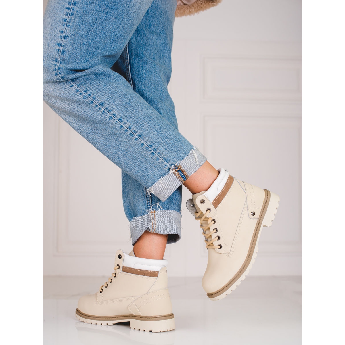 Naisten beigen väriset DK-nahkasaappaat ovat täydellinen valinta kylmempään päivään, ja niissä yhdistyvät tyyli ja toimivuus. Valmistettu korkealaatuisesta luonnonnahasta, ne tarjoavat paitsi elegantin ulkonäön myös kestävyyden ja käyttömukavuuden. Tämä casual- ja urheiluluokkaan sopiva malli sopii täydellisesti jokapäiväisiin tilanteisiin.