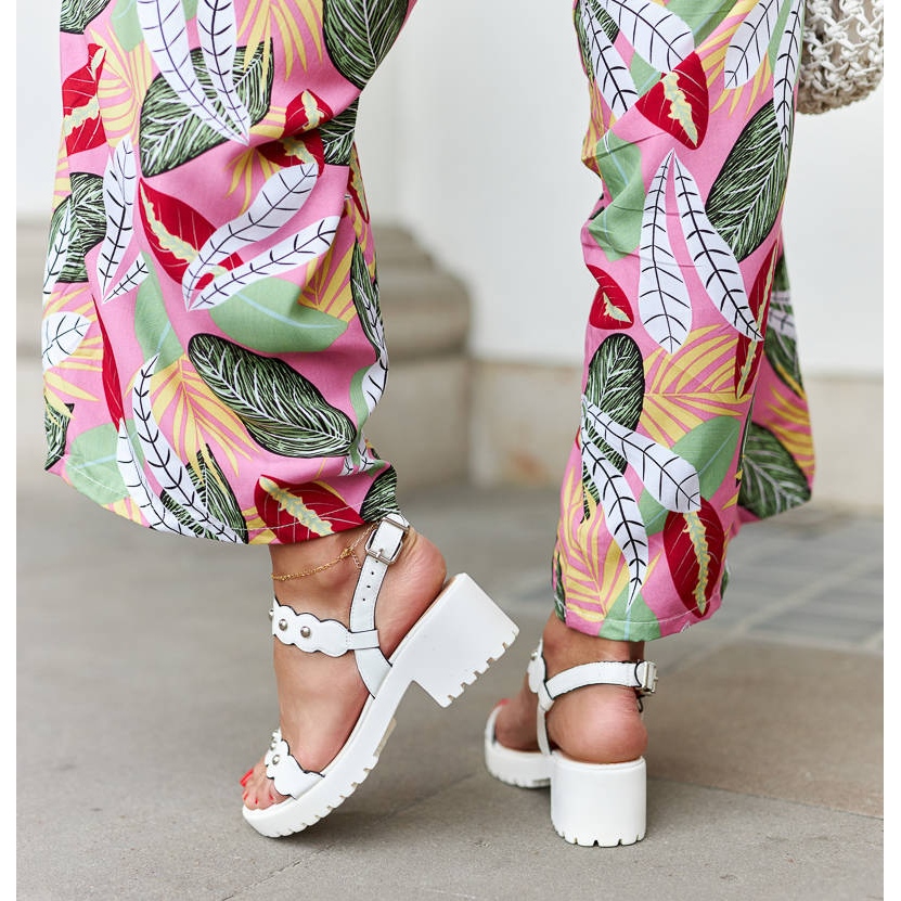 Korkealaatuisesta ekologisesta nahasta valmistetut sandaalit takaavat käyttömukavuuden koko päivän. Valkoinen väri antaa niille universaalin luonteen, ja koristeelliset strassit lisäävät hienovaraista kiiltoa. Mukavan 5 cm:n koron ansiosta ne täydentävät täydellisesti niin arkeen kuin tyylikkäämpiinkin asuihin.