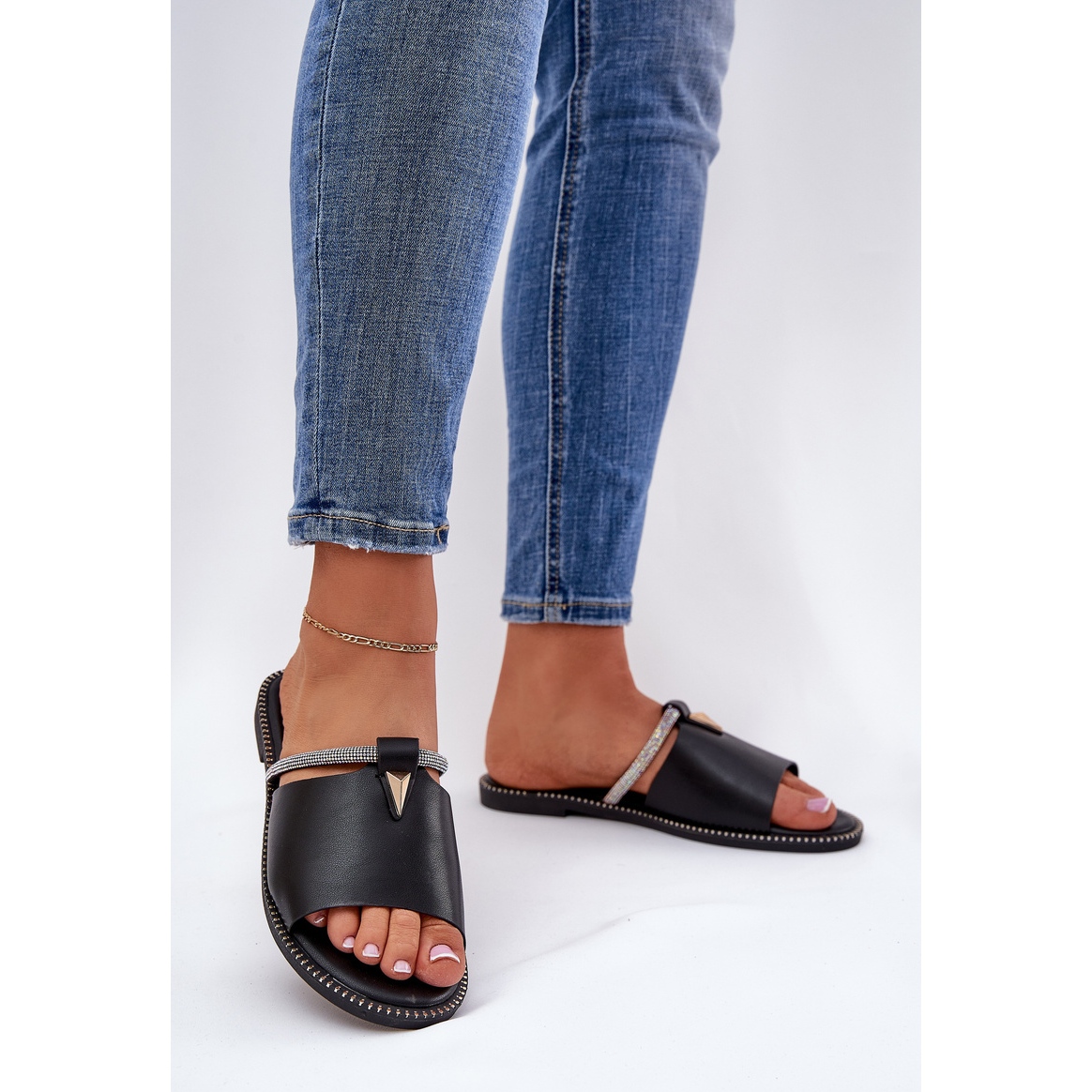 Löydä eleganssi ja mukavuus ekologisen nahan litteän läpän kanssa, jotka ovat erinomainen valinta lämpimiin päiviin. Nämä tyylikkäät flip flops klassisessa mustassa värissä erottuvat koriste -nauhasta, jossa on zirkoni, mikä antaa heille erityisen hehkua. Täydellinen eri tapauksiin, ne työskentelevät sekä joka päivä että tyylikkäiden poistumisten aikana.