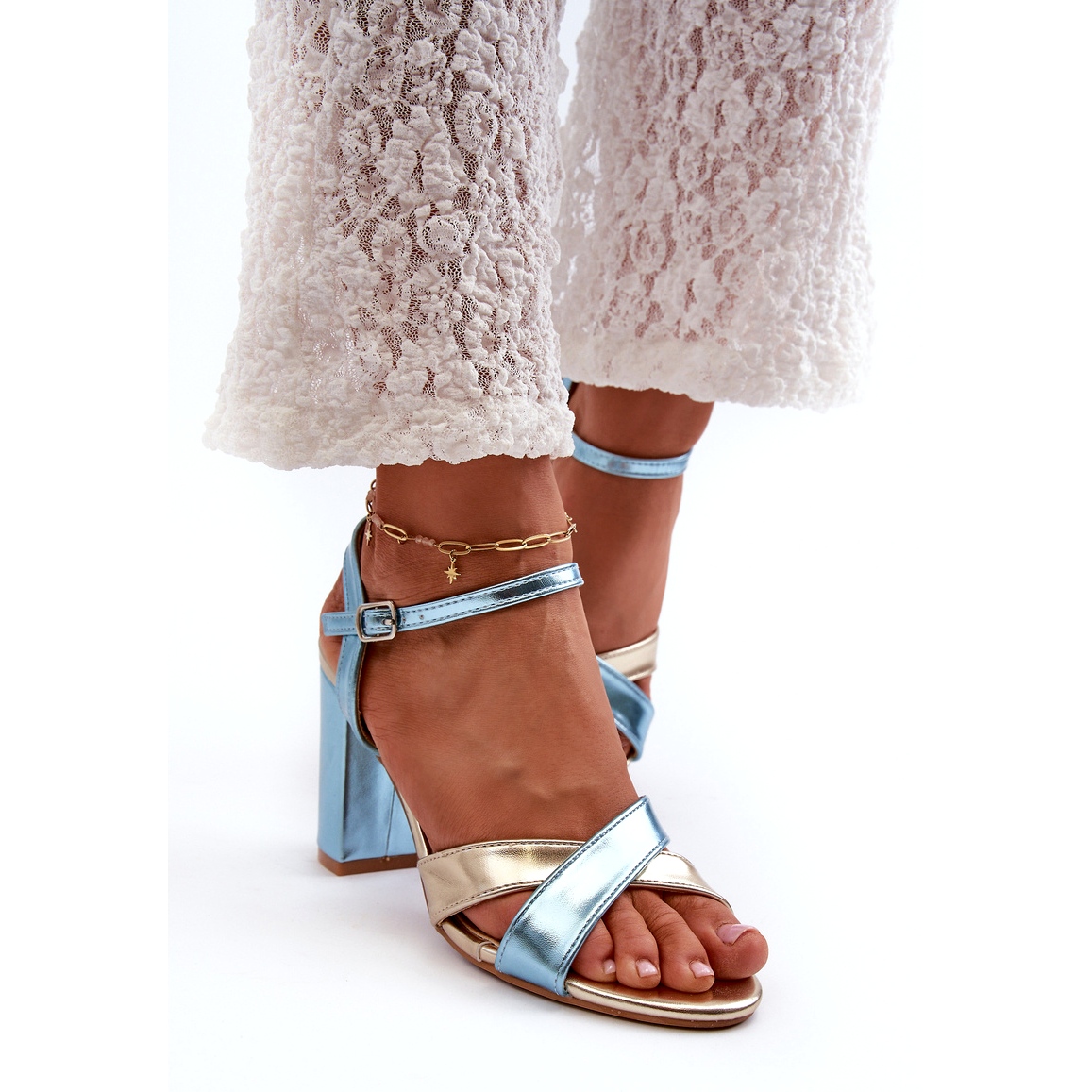 Valitse Eco Leather High Heel Sandaalit Blue and Gold yhdistääksesi eleganssia mukavuuteen ja lisätäksesi ylellisyyttä jokapäiväiseen tyyliisi!