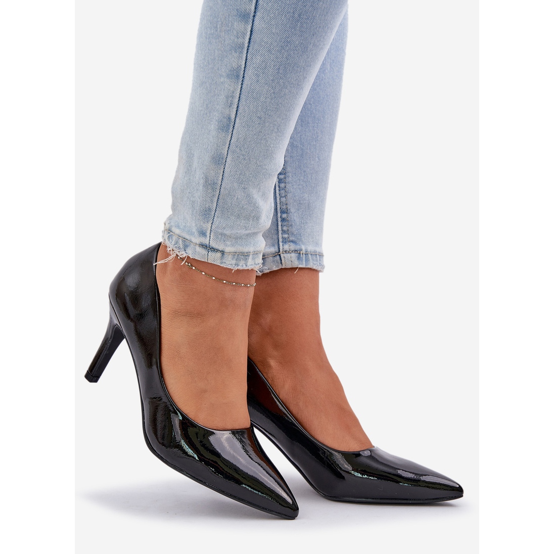 Löydä eleganssi ja tyyli mänty -patenttisilla nahkatapamme mustalla. Nämä naisten pumput yhdistävät klassisen viimeistelyn modernilla muotoilulla, jonka ansiosta ne ovat täydellinen täydennys kaikelle tyylille. Korkea kantapää, jonka korkeus on 8,5 cm, korostaa hienosti kuvaa, ja terävä nenä antaa heille ainutlaatuisen luonteen.