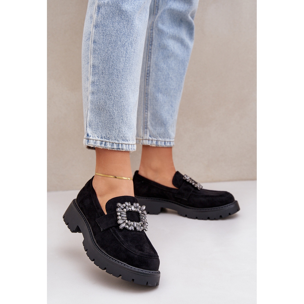 Inna marka Eco mokkanahkaisten naisten leipomot koristeellisella rintakorulla musta