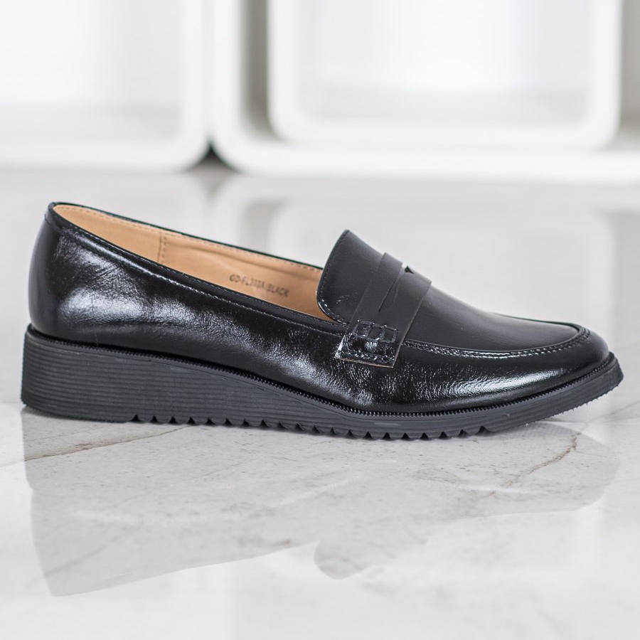 Löydä eleganssia ja mukavuutta Goodinin naisten mustalla mokassiinilla. Nämä tyylikkäät kengät, jotka on valmistettu korkealaatuisesta kiiltonahasta, yhdistävät täydellisesti klassisen muotoilun moderneihin trendeihin. Sileän, mustan pinnan ansiosta mokkasiinit sopivat täydellisesti niin arkeen kuin muodollisempiinkin tyyleihin, mikä tekee niistä erinomaisen valinnan töihin ja erilaisiin juhliin.