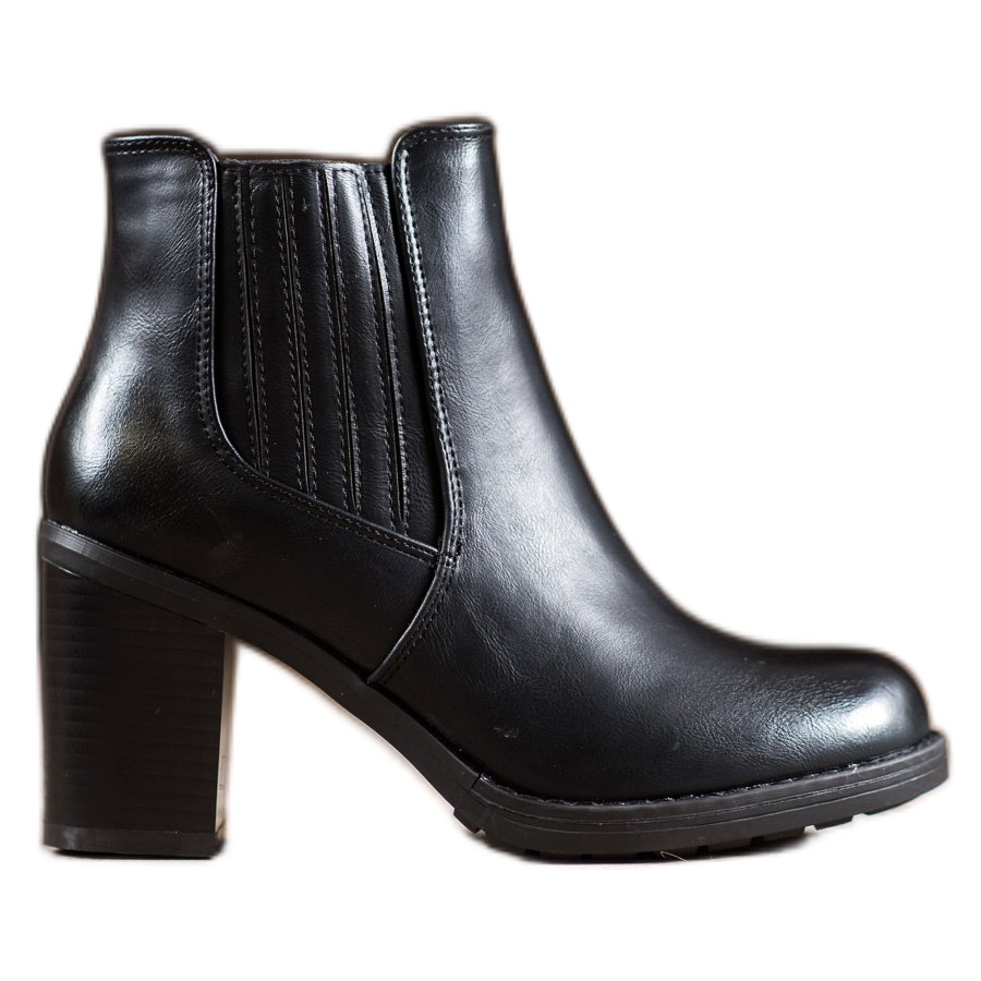 Eko-nahasta valmistetut tyylikkäät Comer-nilkkurit ovat täydellinen valinta kylmempään päivään. Niiden universaali musta väri tekee niistä yhteensopivia moniin eri tyyleihin, niin arkeen kuin tyylikkäämpiinkin. Nilkan yläpuolelle ulottuvat päälliset ja vakaa 8,5 cm lohkokorko takaavat mukavuuden koko päivän ajan.