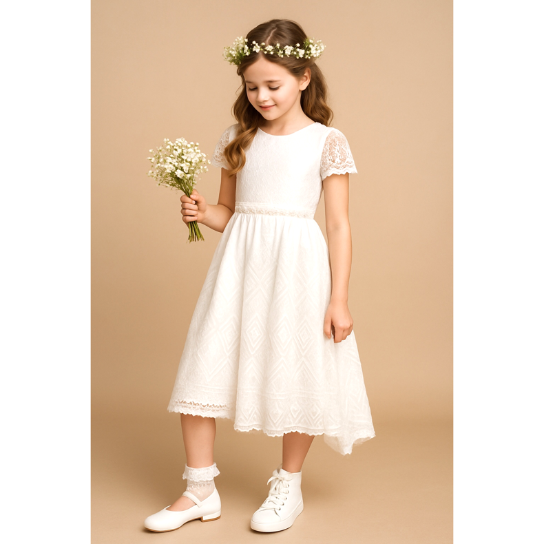 Vaikka valkoinen yhdistetään perinteisesti ehtoolliseen, kauden 2025/2026 trendit osoittavat, että voit olla luovempi. Kermanväriset, beige-väriset, vaaleat ja hienovaraisen harmaat kengät ovat yhä suositumpia. Jos tytöllä on värikäs tai koristeellinen ehtoollinen mekko, voit valita kengät, joiden väri on harmoninen mekon kuvion kanssa. On kuitenkin tärkeää välttää liian kirkkaita värejä - ehtoollinen on edelleen muodollinen tilaisuus. Jos olet varma, voit valita kengät vaaleanpunaisen, herkän sinisen tai mintun sävyinä, mutta vain jos ne sopivat muuhun tyyliin. Jos olet epävarma, valkoinen tai kerma on aina turvallinen valinta. Muista myös, että kenkien tulee sopia sukkien kanssa - perinteisesti valkoiset tai kermanväriset, mutta voit kokeilla herkkiä kuvioita tai värejä, jos ne sopivat yleiseen tyyliin.
