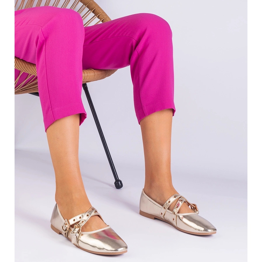 Inna marka Eko -holkasta valmistettu kultaiset balleriinit, jotka on koristeltu soljella kultainen