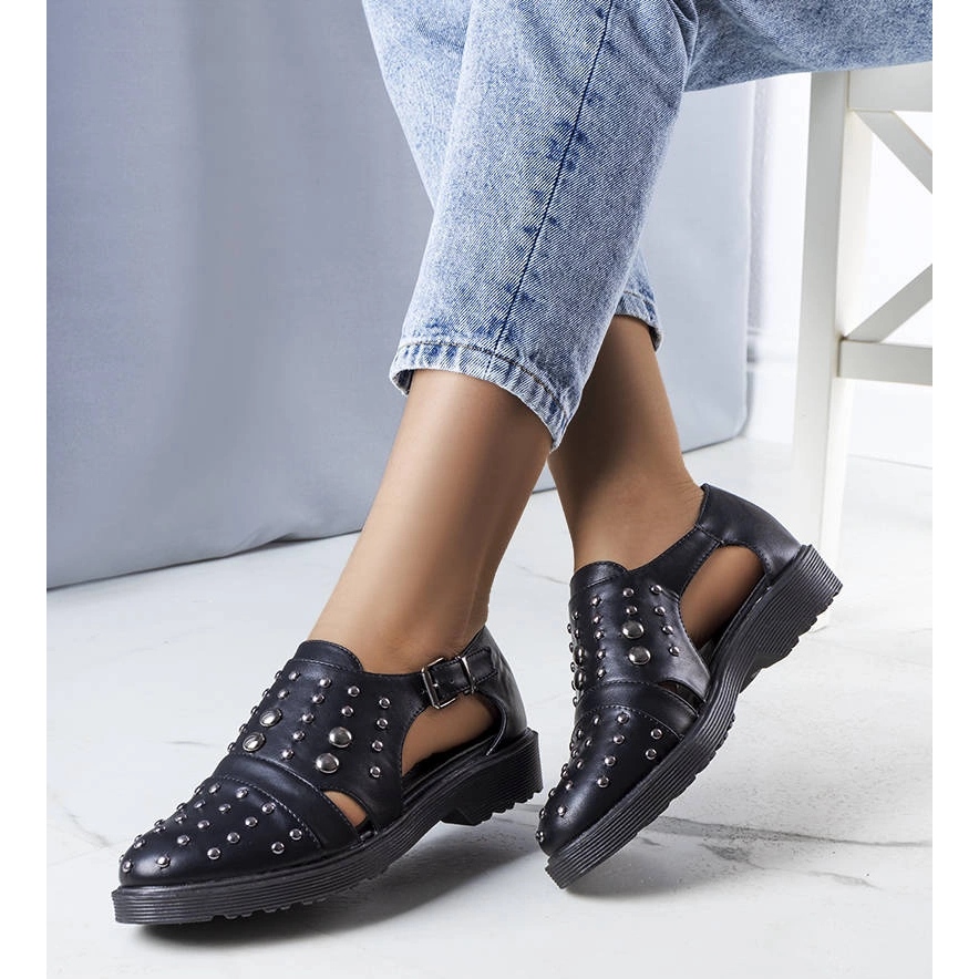 Eleanin tyylikkäät naiskengät erottuvat rikkaasta koristeesta (strassit ja nastat) sekä muodikkaat leikkaukset, jotka lisäävät löysää ja luonnetta. Täydellinen rento, kesätyyli - ne sekoittuvat hyvin farkut, shortsit tai kevyt mekko.
