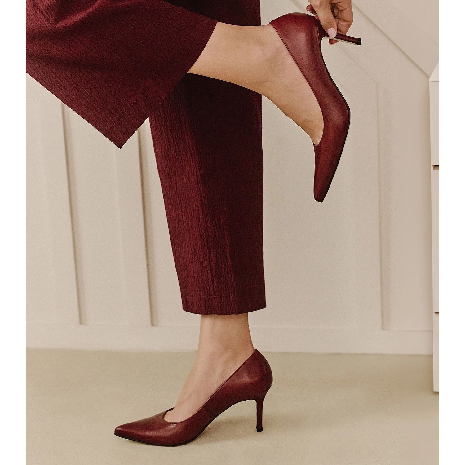 Huomioitu nenä ja tyylikäs 7 cm: n korkea nasta antavat näille kengille erillisen hahmon, joka sopii täydellisesti uusimpiin muotisuuntauksiin. Luonnonahkalla viimeisteltyjen pumppujen sisätilat tarjoavat mukavuutta kävellessä, ja nahkapäällysteinen iho lisää tyylikkään korostuksen kantapäähän.