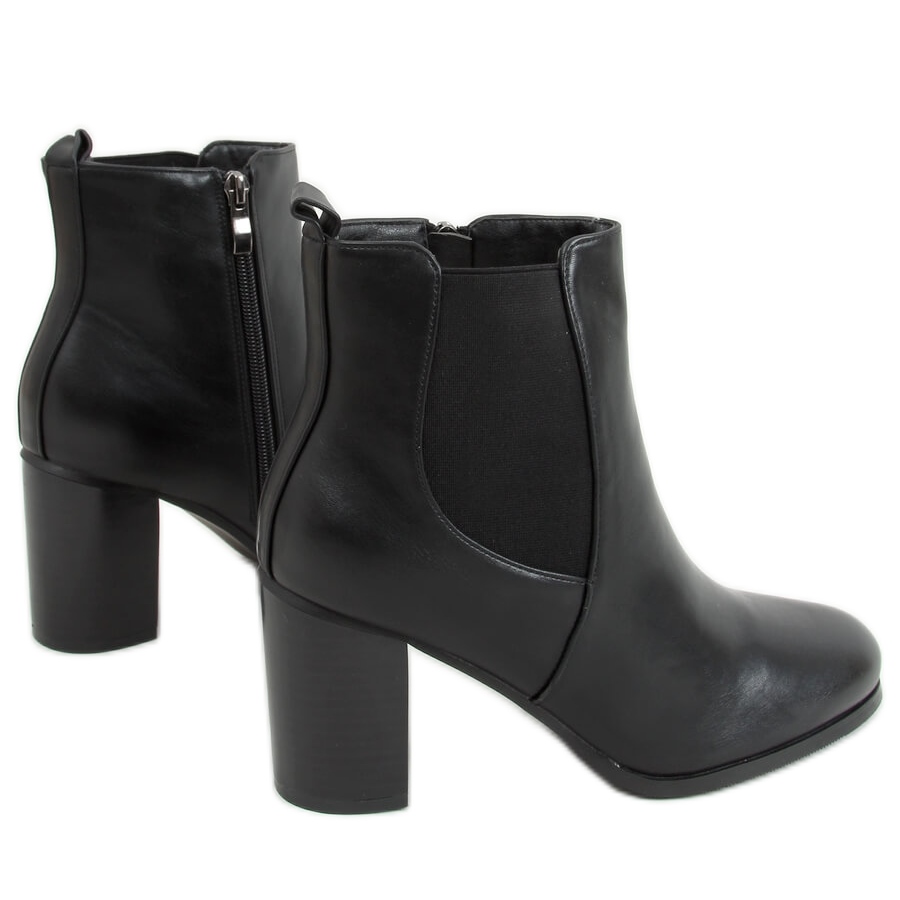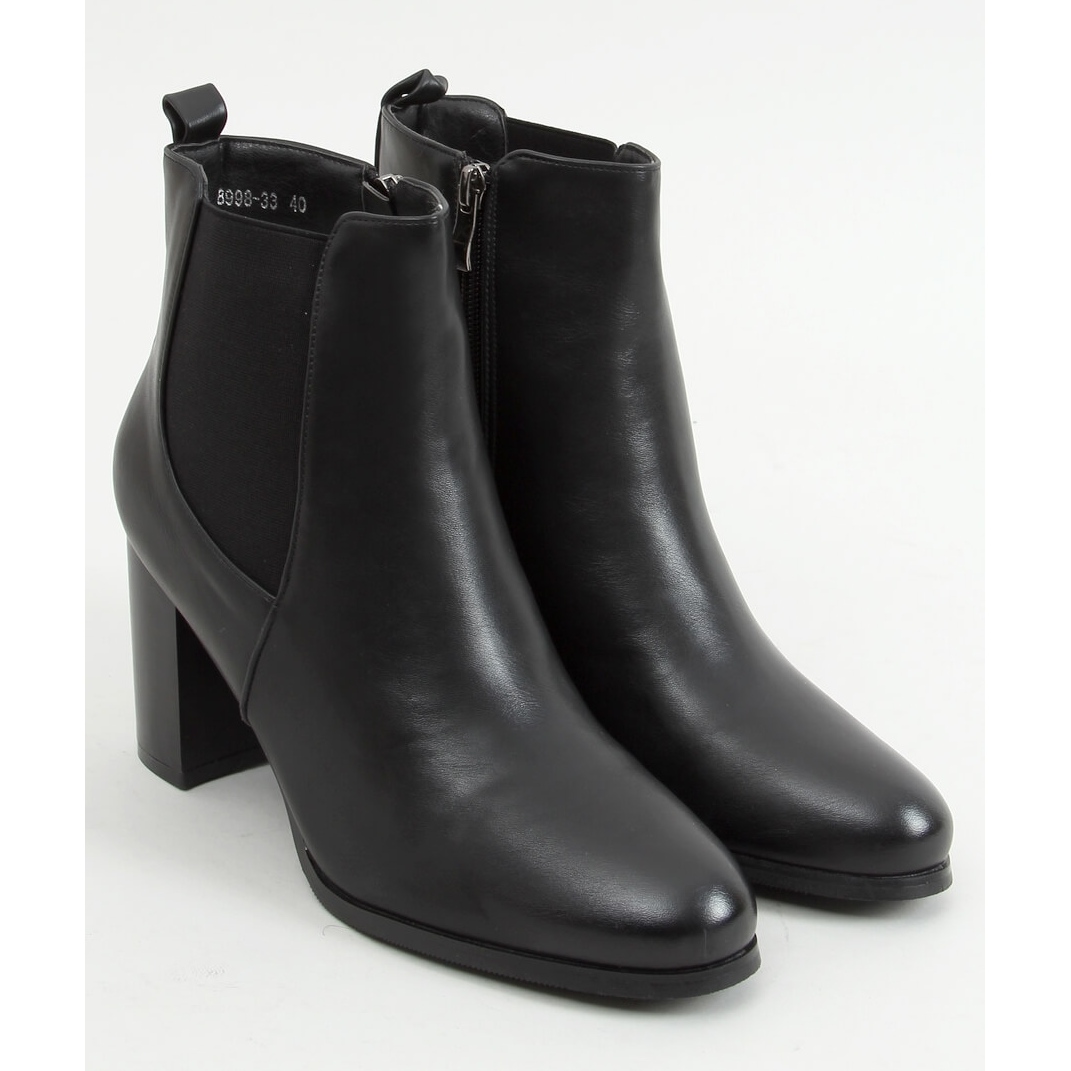 Mielenkiintoinen aksentti Elvira Black -mallissa on päällisen sivulla oleva joustava välike, joka muistuttaa Chelsea-saappaiden tyyliä. Tämän ansiosta et vain saavuta tyyliä, vaan myös pukemisen mukavuutta - kiinnitä se vain vetoketjulla valmistautuaksesi nopeasti ja helposti ulos. Vakaa 8 cm korkea pylväs keventää jalkoja täydellisesti ja lisää niihin keveyttä ja eleganssia.