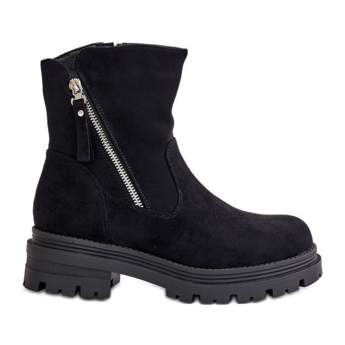 Yksityiskohdat: Eristetut saappaat tasaisella kantapäällä eko-mokkanahkaa, Black Reloma musta