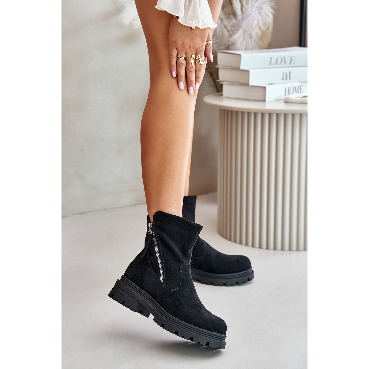 Tämä malli on upotettu tasaiseen kantapäähän ja alustaan, joka takaa vakauden ja mukavuuden päivittäisen toiminnan aikana. Pyöristetyt nenät antavat kengille hienovaraisen, naisellinen luonteen, ja sisustus, joka on vuorattu pehmeällä jalkineiden viltillä, suojaa tehokkaasti kylmiltä, mikä tekee niistä ihanteellisen ratkaisun syksy- ja talvikauteen.