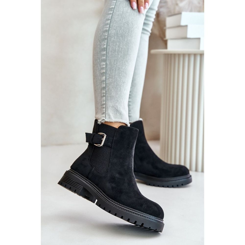 Yksityiskohdat: Eristetyt Chelsea-saappaat vetoketjulla ja soljella, Black Kikiella musta